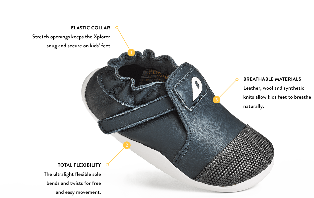 Más ligero, más resistente, más flexible, el Xplorer es el zapato perfecto para los pequeños cruceros cuando se embarcan en sus primeras aventuras en posición vertical. Agarrándose a las sillas y a las mesas para aumentar su perspectiva, los pequeños cruceros están empezando a inspeccionar el mundo desde un nuevo ángulo erguido.